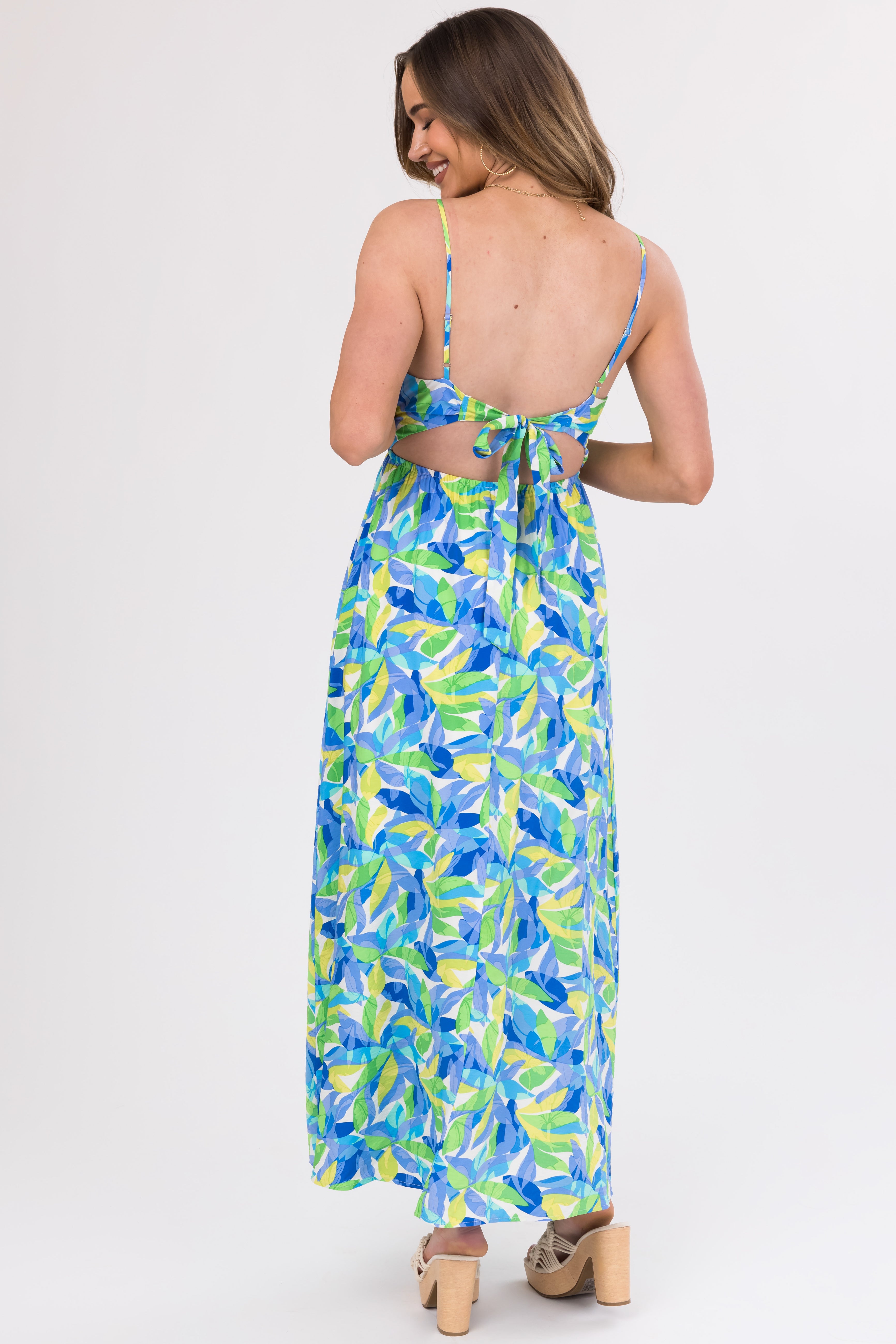 - Open back with tie detail